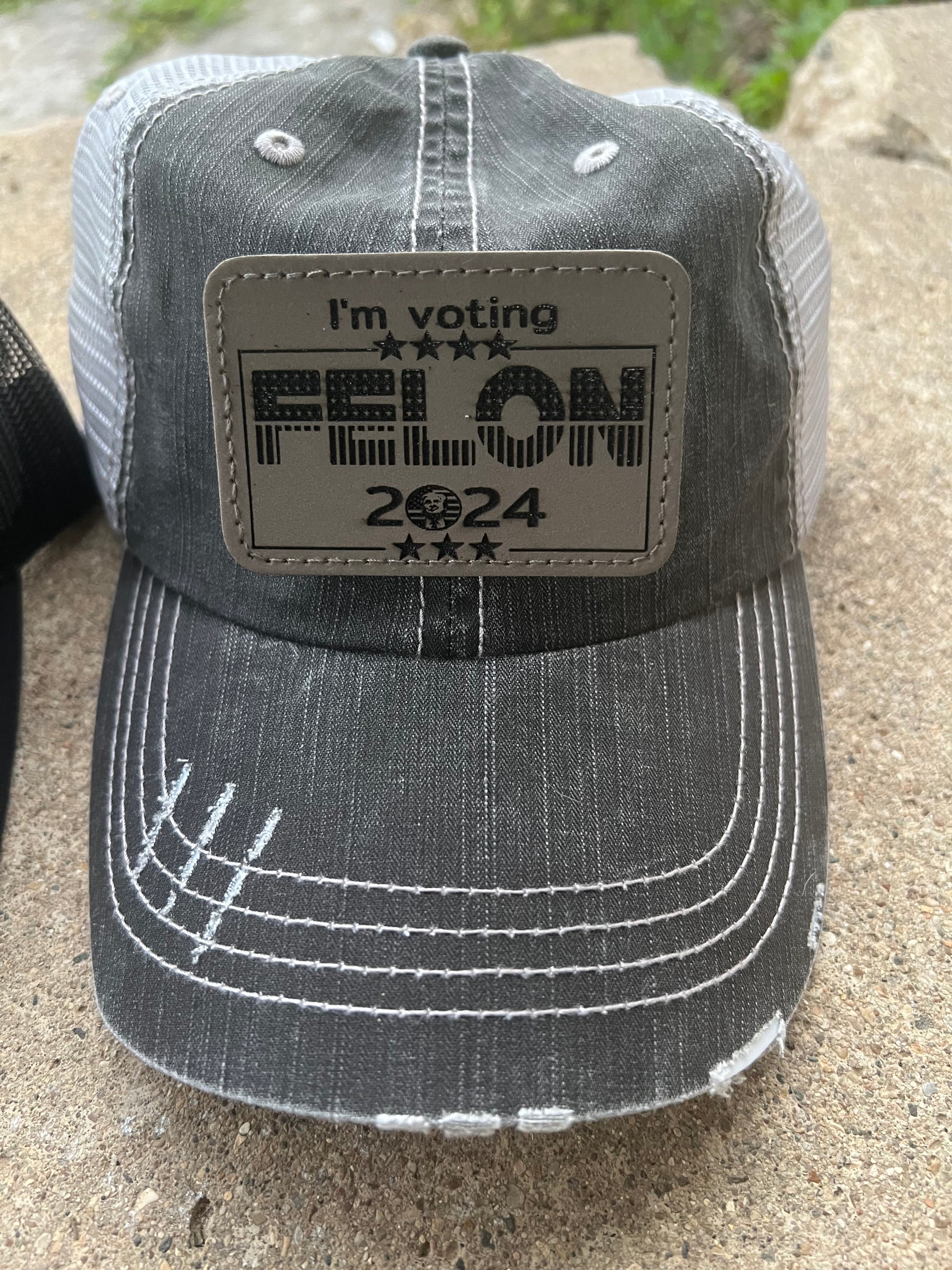 Show your support for voting rights with our I'm Voting Felon 2024 Hat! This bold, statement accessory not only makes a powerful visual statement, but it also helps spread awareness for the importance of restoring voting rights for all. Wear it with pride and inspire others to take action!