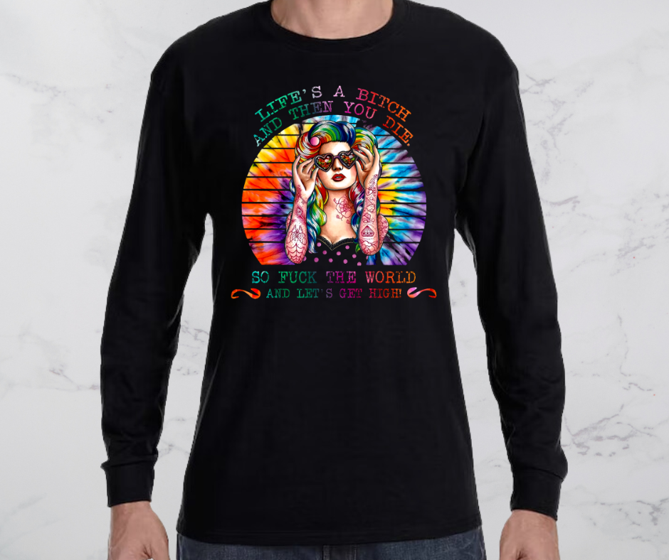 "Experience life to the fullest with Life is a bi**h.. Let's get high. This inspiring product reminds us to live boldly and make the most of every moment. Say goodbye to regrets and start living your best life!"